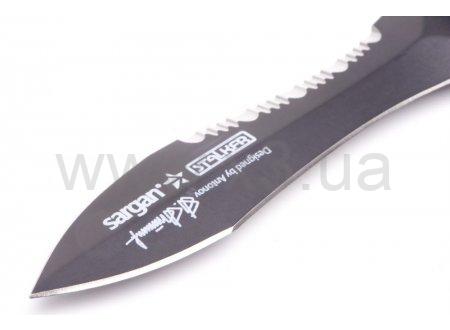Нож Sargan Сталкер-Стропорез Z1, имеет мощный прочный клинок с характерной формой стропореза ВДВ. Удлиненная вогнутая линия реза, существенно облегчает разрезание одним движением различного рода шнуров, лесок, сетей - смертельную опасность для подводного охотника. Копьевидное острие клинка имеет хорошую проникающую способность, что позволяет уверенно обездвиживать даже самую крупную трофейную рыбу. Нож Sargan Сталкер Стропорез Z1, рекомендуется размещать на левой стороне груди, (на штатных клипсах костюмов Sargan), что гарантирует быстрое и легкое извлечение ножа из ножен, любой рукой, из любого положение, одним движением и обеспечивает мгновенную готовность к применению