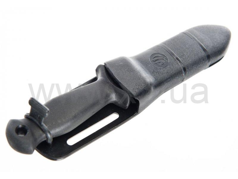 Рукоятка ножа выполнена из нескользящего технополимера черного цвета.