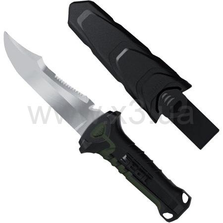 Сделано в Италии с лезвием специальной закалки из нержавеющей стали. Это большой нож идеально подходит для использования в подводной охоте. Его особенностями являются: высокая проникающая способность и эргономичная рукоятка из двойного материала, которая оптимизирует мощность и функциональность. Ножны из ударопрочного пластика нового дизайна с кнопкой блокировки инновационной асимметричной системы FSL (Fast Locking System - Система Быстрой Фиксации), для обеспечения максимальной безопасности и функциональности. Нож может быть извлечён с помощью одной руки и вставлен с обеих сторон.