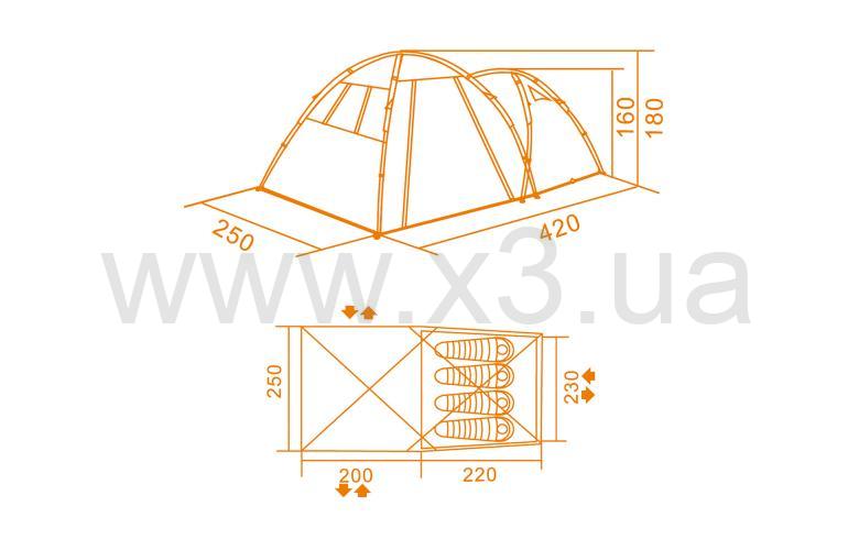 Размеры (развернута): 420х250х160/180 см