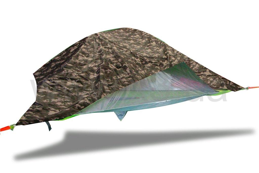 Этот продукт владеет всеми преимуществами гамака, вместительностью, безопасностью и комфортом палатки. Проблема с влажностью земли и её неровностями просто перечеркнута. Подвесная конструкция имеет множество вариантов крепления, начиная от деревьев и заканчивая багажником машины, что делает её весьма многофункциональным продуктом.