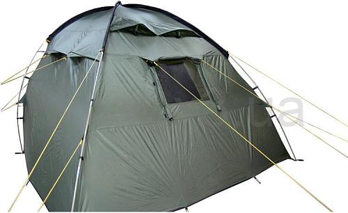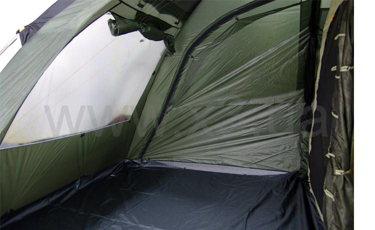При необходимости спальное помещение можно разделить быстросъемной перегородкой. Для большего уюта и комфорта можно пристегнуть дополнительный пол в тамбур (входит в комплект). Конструкция позволяет использовать тент без спального помещения как столовую, склад или базовую палатку.