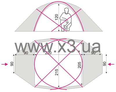| Материал внешнего тента | 40D/240Т Nylon Double Rip Stop 6000 мм SILICONE | |