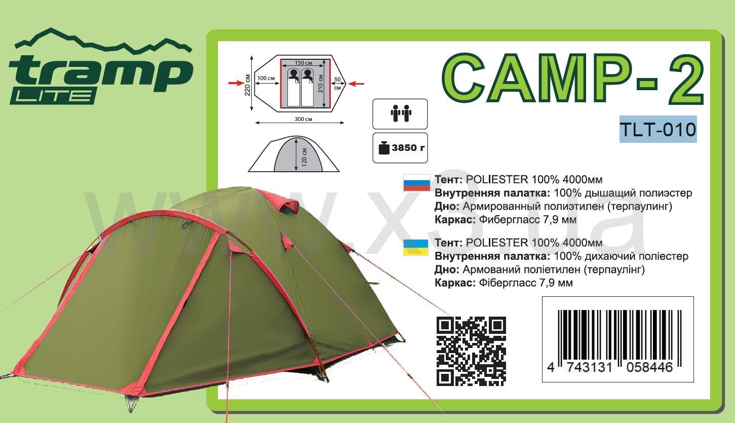 Двухместная универсальная туристическая палатка Tramp Lite CAMP 2 предназначена для туристических походов и отдыха на природе в весеннее, летнее и осеннее время.