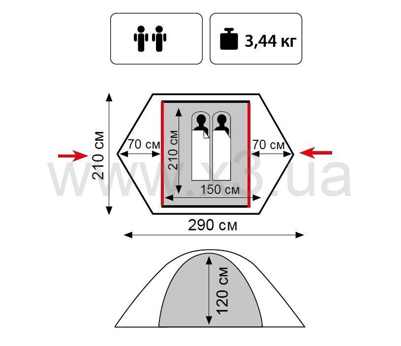 Тент: 100% полиестер 75D/190T WR PU 4000 мм. в. ст.