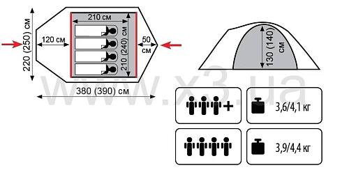 Тент: 100% полиестер 75D/190T WR PU 4000 мм. в. ст.