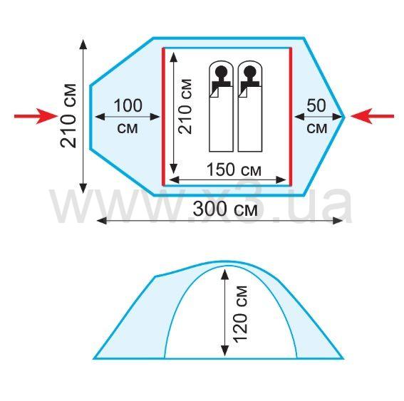 Материал тента: 100% Polyester 75D/190T RipStop 5000 мм в. ст.