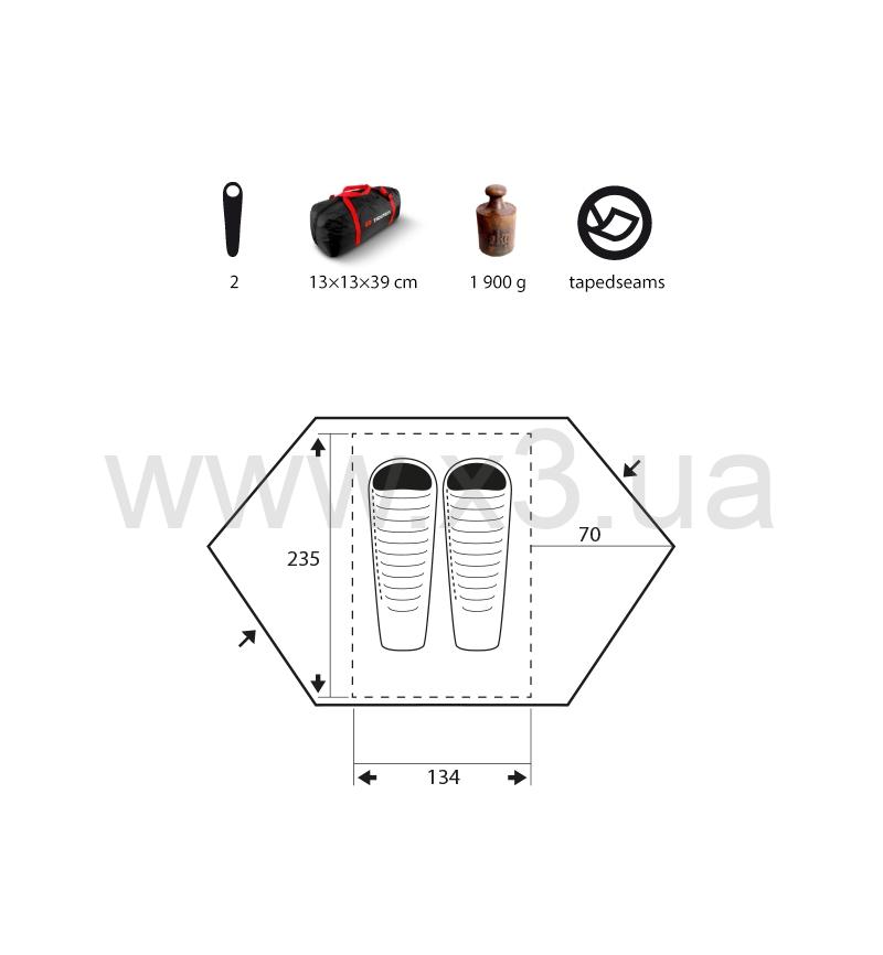 Trimm Vector-DSL - это ультралегкая (1,9 кг) двухместная всесезонная экспедиционная палатка. Хорошая устойчивость гарантируется четырехсекционной дюралюминиевой структурой из высококачественных износостойких материалов и деталей. Внешний тент защищает от ультрафиолета, просиликонен, а это самый эффективный способ предотвращения проникновения влаги внутрь. Дно из многослойного полиэтилена с переплетенной структурой для лучшей прочности и водонепроницаемости. Палатка фиксируется с помощью высококачественных клипс ITW Nexus, которые регулируют натяжение внешнего тента. Колышки дюралюминиевые DAC золотистого цвета. Японские молнии YKK, которыми оснащена палатка, прослужат гораздо дольше, чем другая фурнитура. Палатка очень легко и быстро устанавливается. Есть два симметричных входа, которые обеспечивают превосходную вентиляцию и комфорт. В комплекте есть компрессионная сумка для транспортировки и хранения, и ремонтный набор. Такая палатку отлично подойдет для использования в сложных горных экспедициях.