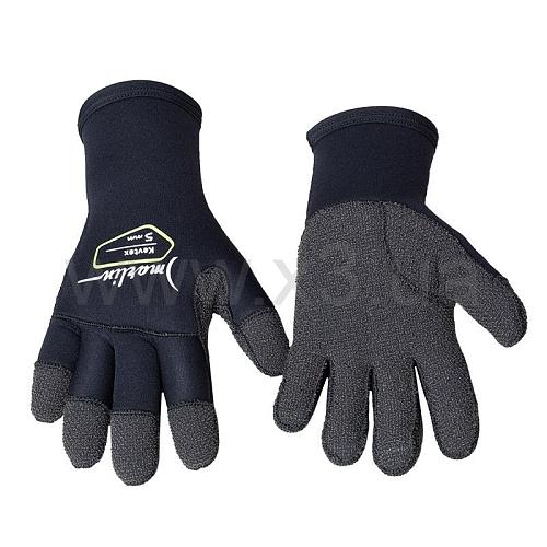 Перчатки Marlin Kevtex (Марлин Кевтекс) изготовлены из эластичного неопрена фирмы Шейко толщиной 5 мм., с нейлоновым покрытием внутри и снаружи. Ладонь и пальцы перчаток защищены кевларом. Уникальная прочность кевлара позволяет использовать перчатки любителям рэк-дайвинга, подводным археологам, промышленным водолазам, промысловикам и просто любителям лова раков. Анатомический крой обеспечивает удобство при надевании и использовании.