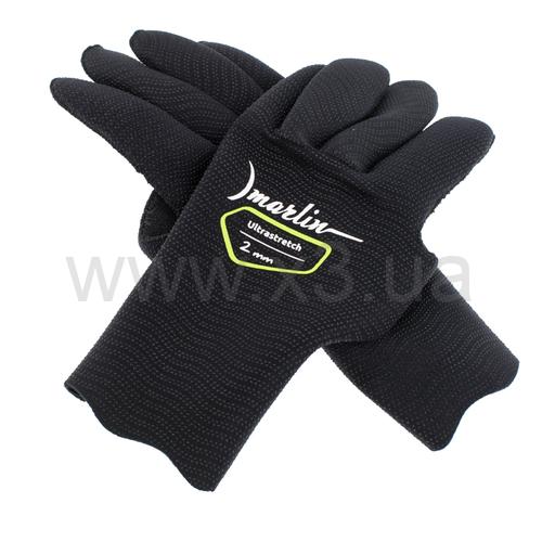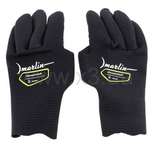 Перчатки Marlin Ultrastretch (Марлин Ультрастреч) сделаны из эластичного неопрена фирмы Шейко, покрытого сверхрастяжимым нейлоном ultrastretch. Анатомический крой обеспечивает плотное, но комфортное обжимание кисти, сохраняя её чувствительность при эксплуатации, предотвращая при этом циркуляцию воды и сберегая тепло. Нейлон внутри даёт возможность надевать перчатку на сухую кисть (без мыльного раствора). Прорезиненная поверхность ладоней позволяет уверенно удерживать предметы в воде.