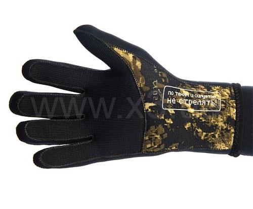Пятипалые перчатки изготовлены из эластичного и прочного неопрена. Внутренняя сторона перчатки усилена износостойким покрытием «supratex», благодаря чему защищает от порезов, различных повреждений и т. д. В данной модели учтён анатомический крой, который обеспечивает плотное облегание и свободу движение кистей рук, а так же позволяет уверенно удерживать в руках рукоятку ружья или ножа.