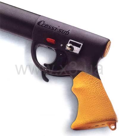 Прочный крючок для крепления линя расположен на заднем зацепе гарпуна (хвостовике). Ружье имеет предохранитель, блокирующий перемещение спускового крючка и активизирующий линесбрасыватель.