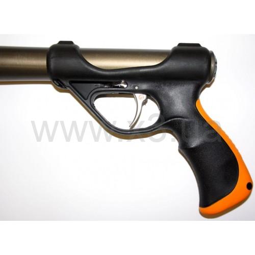 Рукоять Pelengas Magnum выполнена из прорезиненного материала, имеет универсальный хват и будет удобна как правшам, так и левшам. Задняя часть окрашена в ярко-оранжевый цвет, что облегчает поиск ружья в случае, если оно выпало из рук или подстреленная рыба вырвала его из руки. Рукоять увеличена по сравнению с пневматами итальянского и французского производства, благодаря чему её легче обхватить даже в толстой перчатке толщиной 7 или 9 мм, а мизинец при этом не будет спадать с рукояти. Скоба под спусковым крючком также увеличена, оставляя достаточно места для одетого в толстую перчатку указательного пальца.