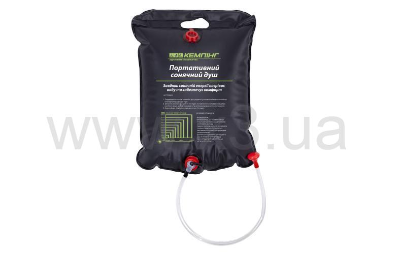 Наш душ - это небольшой герметичный резервуар объемом 20 л. К нему присоединяется эластичная трубка с закрывающим клапаном и насадкой рассекателя водной струи.