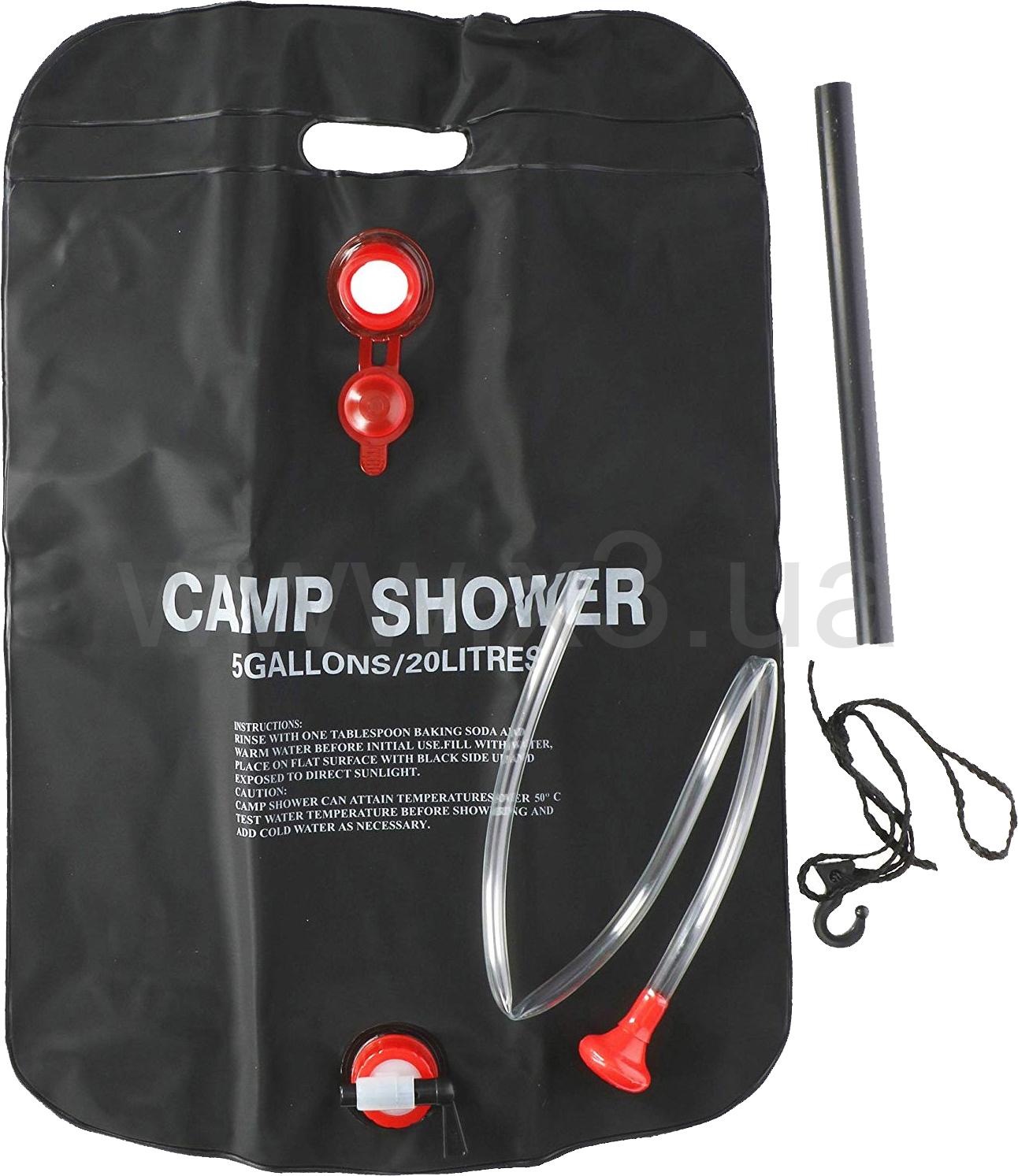 Портативный душ для кемпинга, автопутешествий, пляжа, дачи и т. д. Резервуара объемом 20 л хватит на 7 минут душа под сильным, равномерным потоком.