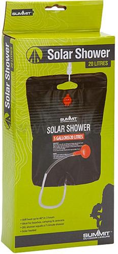 Емкость черного цвета хорошо нагревается на солнце, в хорошую погоду — до +40° С за три часа. Как вариант — вы можете самостоятельно подогреть воду на костре или горелке (макс. температура +50° С) и залить ее в Summit Solar Shower.