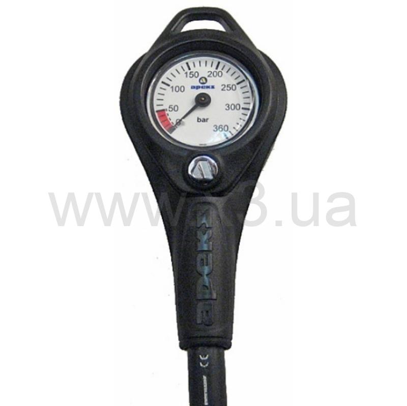 Малогабаритный обтекаемый манометр Apeks является одним из элементов дайвинг регулятора, выполнен в корпусе из никелированной латуни, оборудован люминесцентной шкалой с градуировкой до 360 бар, противоударным стеклом из прозрачного поликарбоната, и резиновым шлангом высокого давления. Корпус имеет предохранительный клапан и заключён в защитный полиуретановый кожух с петлёй для крепежа.