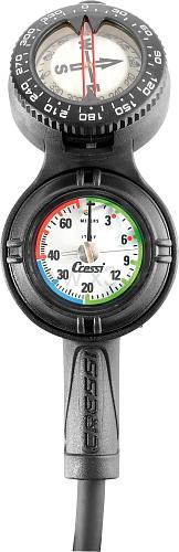 Консоль 3 Cressi представляет собой компактную консоль, где находится манометр Cressi Mini-манометром, новый, маленький, аналоговый глубиномер и компас. Все Манометры высокого качества инструменты. Глубина и Манометры имеют хромированная латунь дел и глубиномер является Мембрана диафрагмы Actuated Design. Все инструменты имеют большой круглый весы Легко читаемый. Эти инструменты расположены в небольшой современный Shaped Console ботинке Modular, изготовленные из поликарбоната и DESMOPAN, (а термопластичный полиуретан) два материала, которые обеспечивают защиту от ударов, царапин и которые в то же время, очень легкий. В конце консоли, слегка по бокам, есть два ушки для крепления инструмента к BCD или ремешками с зажимом или Строп так, чтобы он не свисает с риском ловли и нанесения ущерба окружающей среде или инструментов.