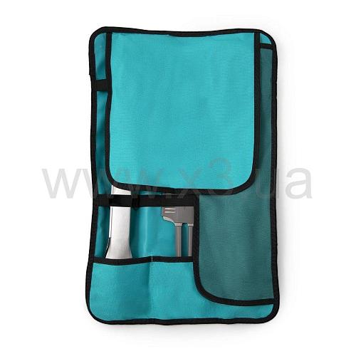 Поставляется такой набор в специальном чехле, который скручивается как коврик и фиксируется резинками. Внутри чехол имеет удобные карманы для размещения принадлежностей. Благодаря чехлу, этот набор удобно использовать именно на природе. Это идеальный вариант для кемпинга и отдыха с друзьями под открытым небом.