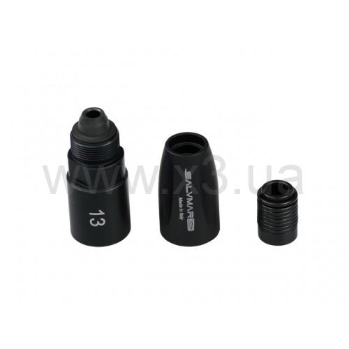 Пневмовакуумный набор совместим со стволами 13 мм. Вес надульника составляет всего 48 грамм. Рекомендуется использовать с поршнями Salvimar. Позволяет поднять мощность выстрела на 15-20%, не увеличивая усилие при зарядке. Пневмовакуумный набор служит для доработки пневматических ружей Salvimar VINTAIR, Mares Sten, Cressi-Sub SL.