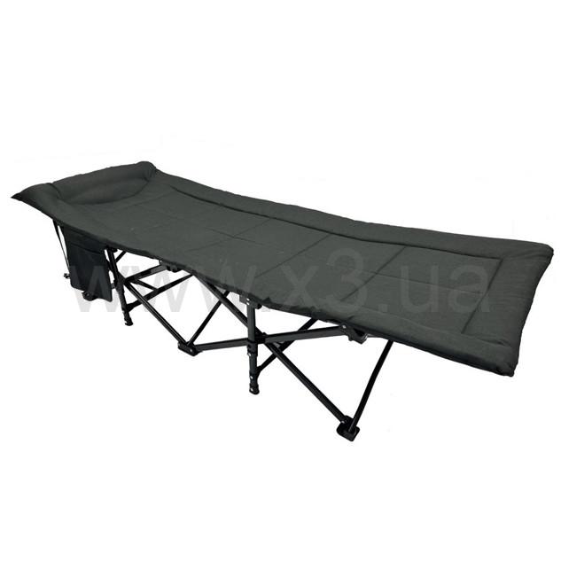 Стальная рама делает раскладушку крепкой, выдерживающей большой вес. Уникальная конструкция рамы позволяет увеличивать натяжение ткани при увеличении нагрузки. Ножки выполнены таким образом, чтобы не погружаться в землю. Шесть ножек конструкции делают раскладушку очень устойчивой