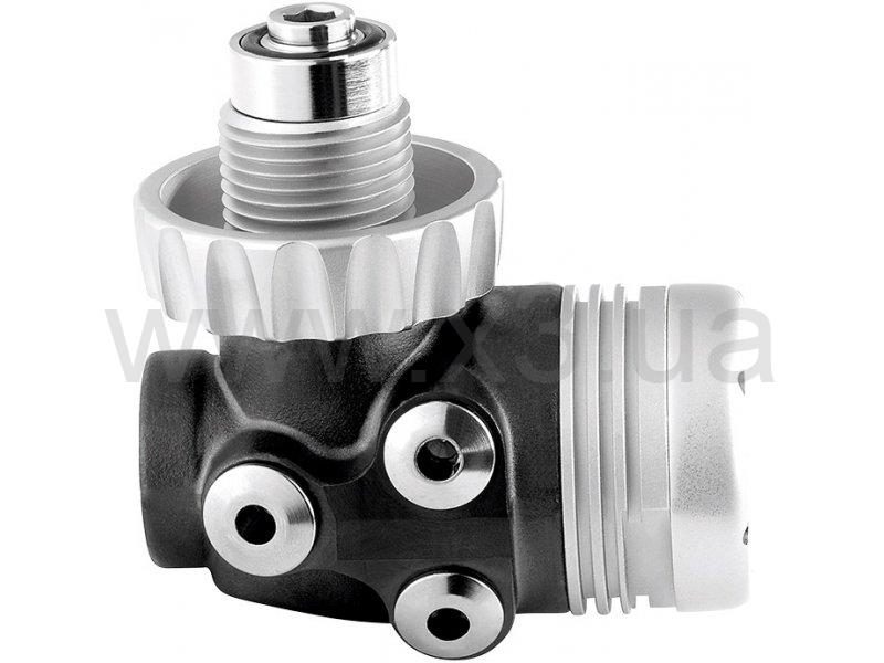 Первая ступень выделяется из диапазона регуляторов Cressi сбалансированной диафрагмой, потому что механизм расположен на оси, перпендикулярной к оси входа воздуха, что создает T-образную форму.
