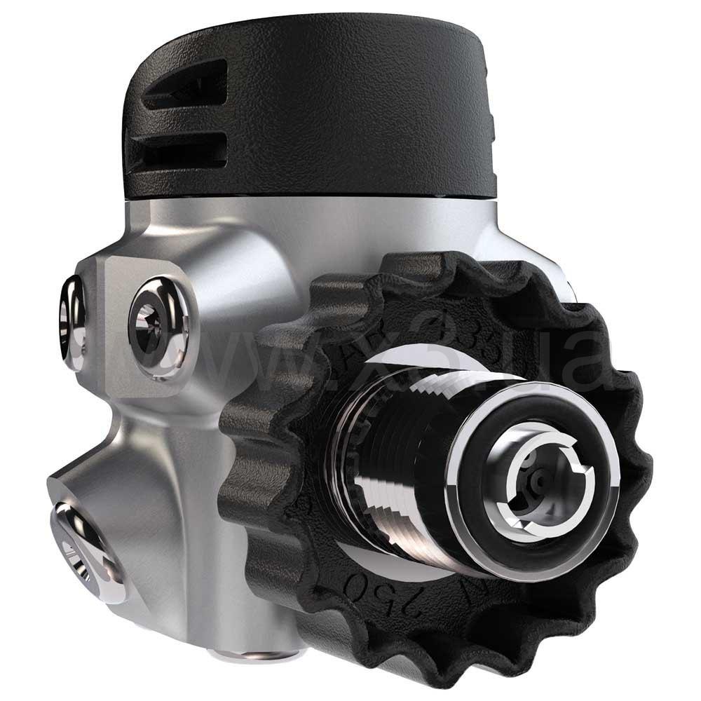 Сбалансированная 1-я ступень 4 боковых и 4 нижних порта низкого давления Идеален для всех технических и рекреационных конфигураций Каналы DFC на всех портах низкого давления Наклон портов высокого давления Автоматический запорный клапан AST (416812) Компактные размеры Несбалансированная 2-я ступень Нижний подход шланга ко второй ступени Может быть установлен на правую или левую сторону Двойной клапан выдоха Большая и удобная кнопка принудительной подачи воздуха Технологии: Ultralight Technopolymer Устойчивый к износу материал, идеально подходит для дайвинга в теплой и умеренной температуре воды. DFC Минимизирует промежуточный перепад давления во время вдоха, таким образом максимизирует подачу газа, особенно в экстремальных условиях. VAD Воздухозаборная трубка подает воздух в загубник, создавая закрученный вихрь с зоной низкого давления в центре, который удерживает диафрагму во время вдоха, для очень чувствительного и легкого дыхания на всех глубинах. Создаёт впечатление увеличение лёгкости дыхания при одинаковом расходе воздуха.