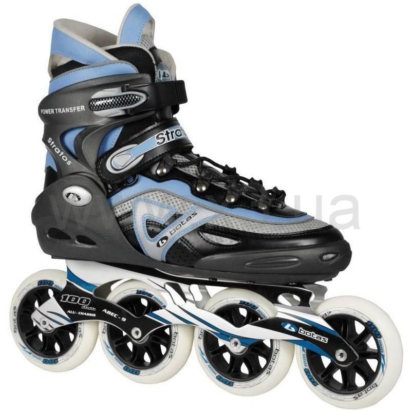 BBotas Stratos 100 – эффектные и эргономичные роликовые коньки для взрослых, отличное решение, как для начинающих, так и для опытных роллеров. Ботинок Botas Stratos 100 выполнен из дышащей ткани, что позволяет эксплуатировать роликовые коньки даже в жаркую погоду. Размеры варьируются от 40-44, что делает Botas Stratos 100 пригодными для мужчин, любого роста и веса. Ролики основаны на раме, изготовленной из прочного алюминиевого сплава, что говорит о надежности модели и ее большой износостойкости. Подшипники этой модели выполнены из хромированной стали, что лишний раз подтверждает высокое качество комплектующих. Застегнуть ролики легко с помощью липучки, шнурков и клипсы, что обеспечивает идеальную фиксацию и посадку ботинка.