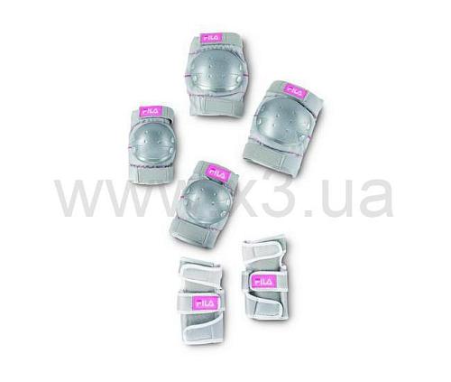 В наборе с роликовыми коньками идет защита: защита на кисти рук, налокотники, наколенники. Налокотники и наколенники имеют двойную фиксацию с помощью липучек и чулка, за счет этого они не сползают при падении, защита на кисти рук имеет две пластины: нижняя защищает от царапин, ударов, ушибов, а верхняя от переломов.