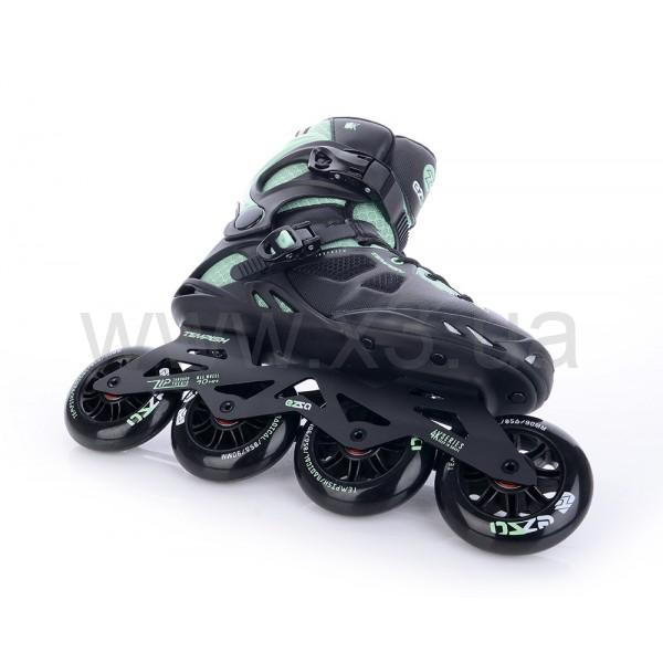 Монолитная рама Tempish Ezza 90 Lady выполнена из алюминиевого сплава 6063, имеет продольное и поперечное регулирования (прикреплена к основанию болтами с возможностью индивидуальной настройки под манеру езды и центр тяжести пользователя). Шасси действительно очень легкие и прочные. Колеса крепятся 8-ми миллиметровыми осями, вкручиваются непосредственно в раму всегда с правой стороны.