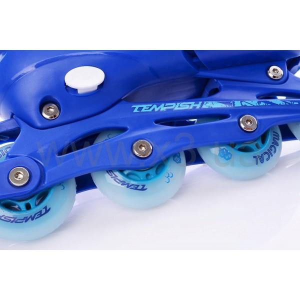 На роликах Tempish Swist Flash установлены колеса серии Catch 64х24 мм, 2 колеса в каждом ролике оборудованы светодиодной подсветкой. Встроенные светодиоды (LED) светятся во время езды за счет энергии, вырабатываемой при вращении колес, не требуют замены батарей или подзарядки.