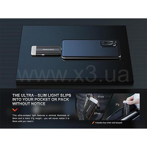 Комплектация: Fenix E-SPARK, USB Type-C зарядный кабель, цепочка для ключей, темляк, инструкция по применению, гарантийный талон