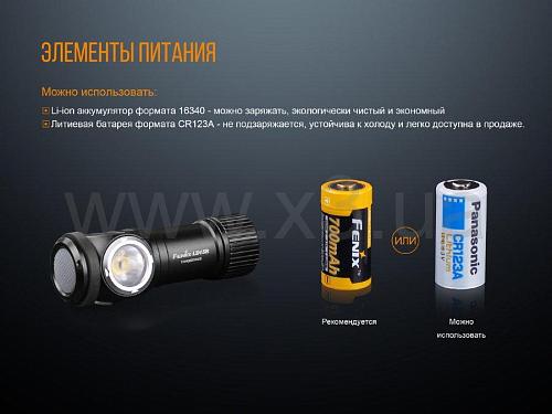 фонарь способен работать от литий-ионного аккумулятора формата 18650 или от литиевой батарейки типоразмера CR123A;