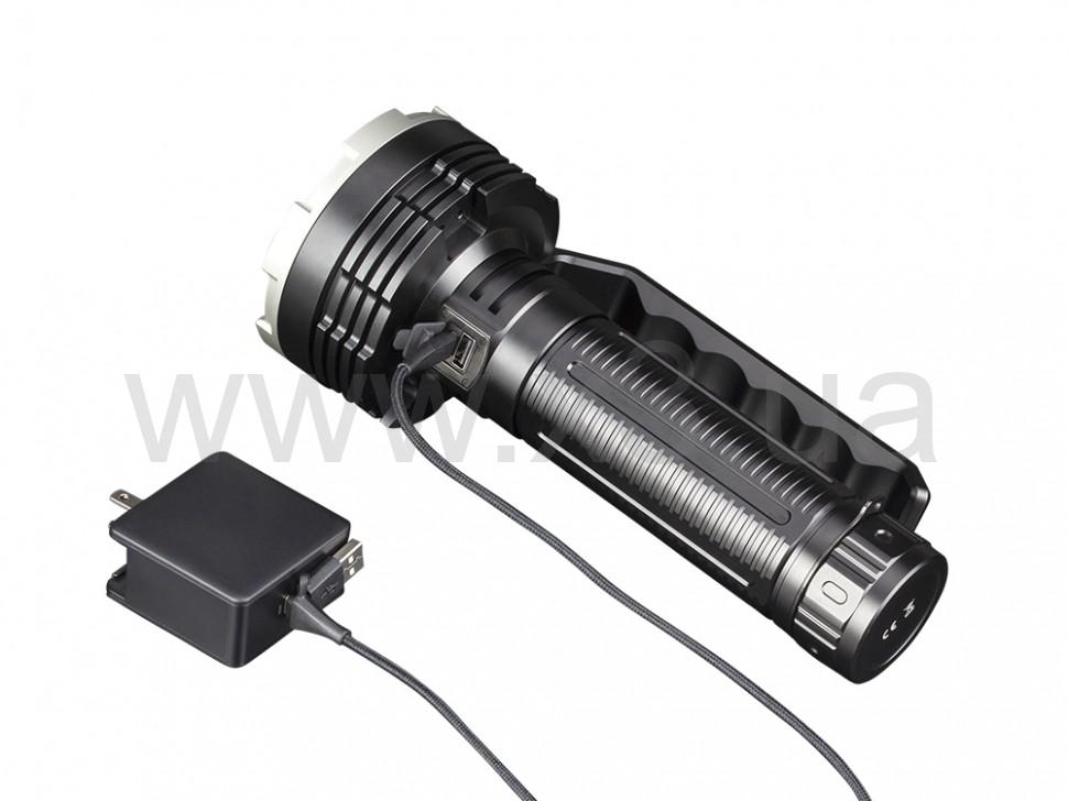 Фонарь модели Fenix LR80R, адаптер питания, кабель для зарядки USB Type-C, ремень на плечо, переходник для крепления на штатив и плечевого ремня, запасное уплотнительное кольцо, руководство пользователя, талон гарантии.