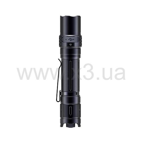 Для максимальной эффективности работы фонаря рекомендуется использовать фирменный Li-ion аккумулятор с форм-фактором 18650 — Fenix ARB-L18 емкостью 3400 мАч, входящий в базовую комплектацию. Рабочее напряжение в устройстве варьируется в пределах от 2.85 В до 6 В. Элемент питания помещается в батарейный отсек, который защищен от попадания влаги и засорений благодаря уплотнительному кольцу. Зарядный порт USB Type-C находится в головной части корпуса и позволяет восполнить емкость аккумулятора без необходимости его предварительного вынимания из батарейного отсека. Зарядка аккумулятора Fenix ARB-L18 до 100% занимает около 3-х часов. Порт защищен силиконовой заглушкой, которая предотвращает контакт с влагой во время эксплуатации модели в сложных погодных условиях.