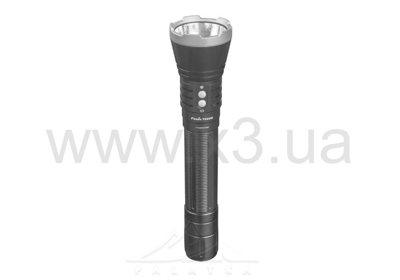 Фонарь Fenix TK65R мощный и надежный в использовании, а благодаря своим габаритам и рифленой рукояти удобно лежит в руке, максимальная яркость в 3200 люмен позволяет осветить все перед собой до 375 м, благодаря различным режимам яркости будет крайне полезным использовать его в поисковых работах, патрулировании территории, охоте, рыбалке, туризме, кемпинге и загородных прогулках. Корпус фонаря водонепроницаемый, изготовлен из легкого и прочного авиационного алюминия. Фонарь может выдерживать падения с высоты до метра, ему не страшен ливень, метель или другие суровые условия эксплуатации. На рукояти фонаря есть насечка для более комфортного и надежного хвата. Индикатор заряда поможет вам заблаговременно подготовиться к поезде и избежать неприятных сюрпризов. Поставляется с мощным и надежным, фирменным аккумулятором, зарядка которого доступна поставляемыми аксессуарами. Благодаря наличию распространенного гнезда Micro-USB, доступная зарядка в любой необходимый момент от любого совместимого через кабель USB устройства.