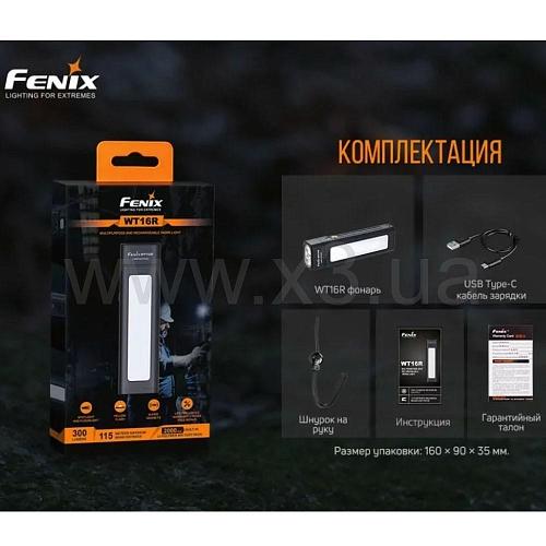 Комплектация: Фонарь Fenix WT16R, кабель для зарядки USB Type-C, ремешок на руку, инструкция, гарантийный талон.