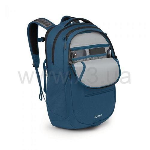Osprey Ozone Laptop Backpack 28 - продуманный рюкзак для тех, кто часто ездит в командировки или путешествует по городам. В нем предусмотрено мягкое отделение для ноутбука, внутренний органайзер для вещей и специальное крепление на дорожную сумку с телескопической ручкой.