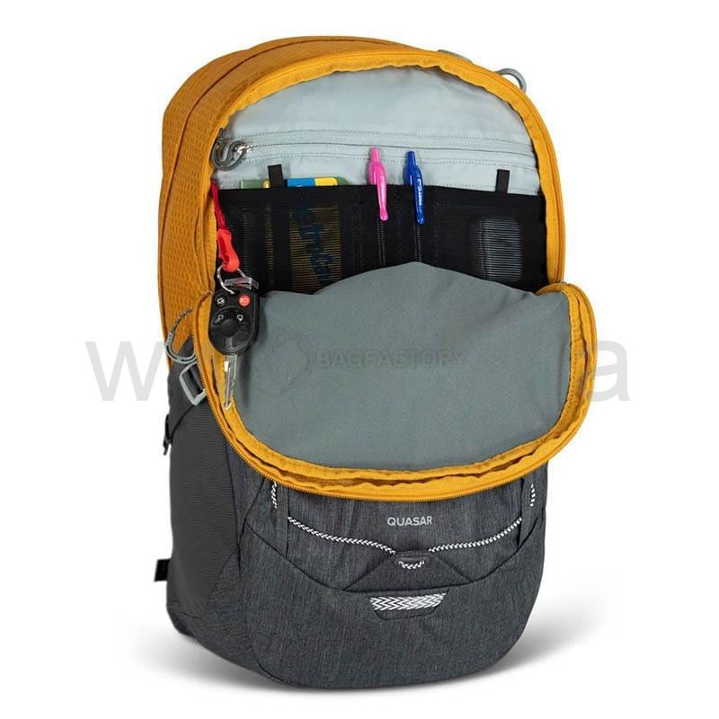 Рюкзак Osprey Quasar на 26 литров отличный выбор рюкзака для ежедневного использования в городе. Выполнен в сдержанном, классическом стиле из прочных и надежных материалов. Комфорт во время носки гарантирует сетчатая задняя панель, которая "дышит" и мягкие плечевые лямки. В карман-органайзер на передней панели можно поместить всю необходимую канцелярию, которая нужна на работе или в университете.