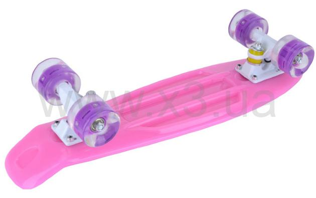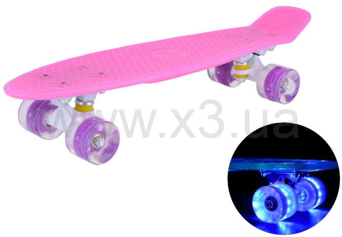 Maxcity MC Plastic Board Gloss - скейтборд для яркого катания в темноте с фосфорицирующей декой и светящимися колесами, оснащен прочной алюминиевой подвеской и качественными подшипниками ABEC-5.