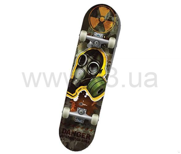Скейтборд TOXIC выполнена наполовину из натурального канадского клена и наполовину – из китайского в девять слоев с оригинальным изображением, нанесенным методом шелкографии. Колеса скейта TOXIC литые с подшипниками АВЕС 3, подвеска «стандарт» сделана из люминия. Полиуретановые мягкие колеса обеспечивают отличное сцепление колес с поверхностью катания.