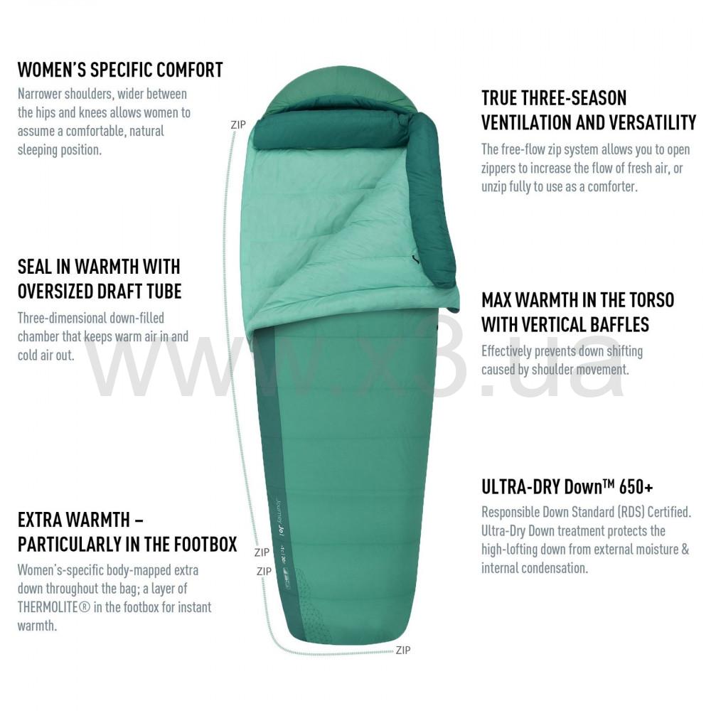 В Journey ™ также предусмотрены дополнительные пуховые панели THERMOLITE® в районе ног, которые помогают поддерживать тепло в пятках и лодыжках, а также особый крой для женщин, который шире на бедре и уже на плече. Завершая продуманные конструктивные особенности этого классического пухового спальника, мы включили большой внутренний защитный карман, который идеально подходит для хранения ценных вещей или батареек в тепле.