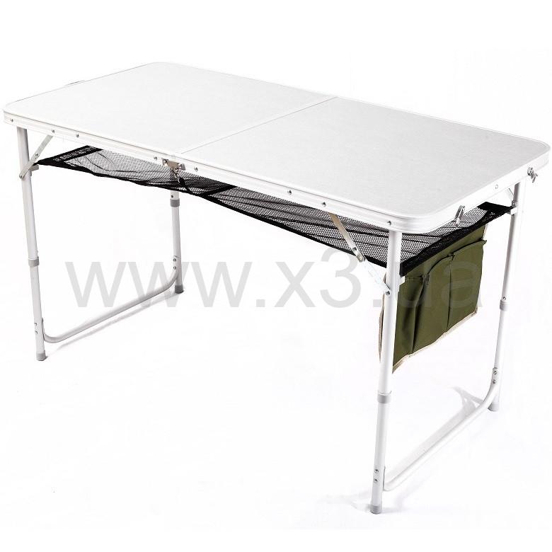 Компактный в сложенном виде, но достаточно большой в разложенном – стол TA – 21407. Такой стол найдёт применение на отдыхе за городом, на пикнике на дачном участке, на рыбалке, а также раскладной стол может пригодиться для приёма большого количества гостей. Стол имеет дополнительную сетчатую полку и боковые карманы для хранения посуды, продуктов, прессы и т.п . Места для хранения столу нужно совсем немного. Да и в багажнике легкового авто раскладному столу всегда найдётся место. Стол складывается пополам так, что превращается в небольшой чемоданчик.