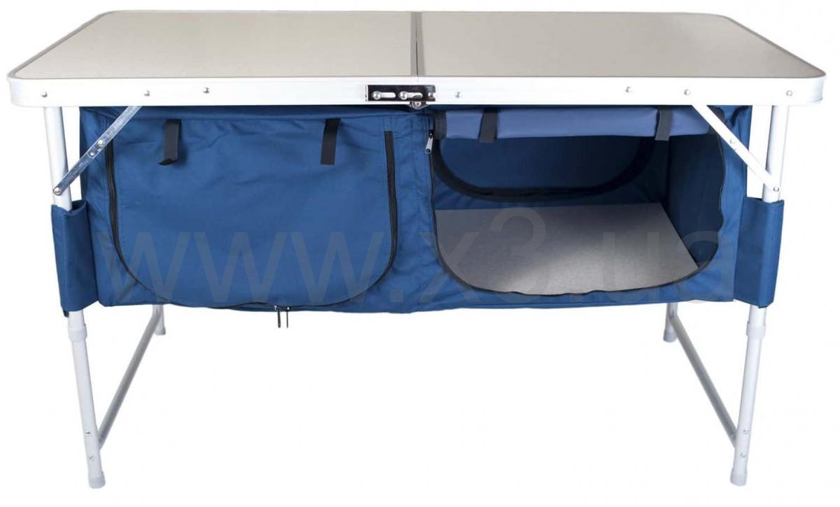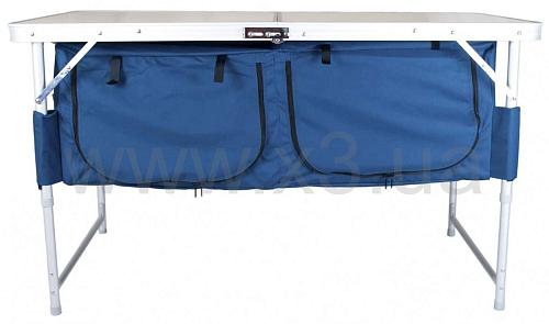 Стол тумба Ranger ТА-519 Rcase – это практически своя кухня на природе. Под рукой всегда будет всё необходимое для приготовления: продукты, специи и приборы. Двухсекционная полка закрытого типа отлично подходит для хранения продуктов, посуды, одежды. Полка сделана из непромокаемой и прочной ткани. Каждая полка застёгивается молнией и имеет доступ с 2-х сторон. По бокам есть ещё по три кармана для столовых приборов и других необходимых мелочей. Для плотности полки на дно укладывается пластины из пластика. Чтобы стол самопроизвольно не складывался, имеются специальные фиксаторы, а высоту стола можно регулировать в два положения. Для устойчивости стола на ножках имеются ломберные петли. При необходимости тумбу можно отстегнуть и постирать.