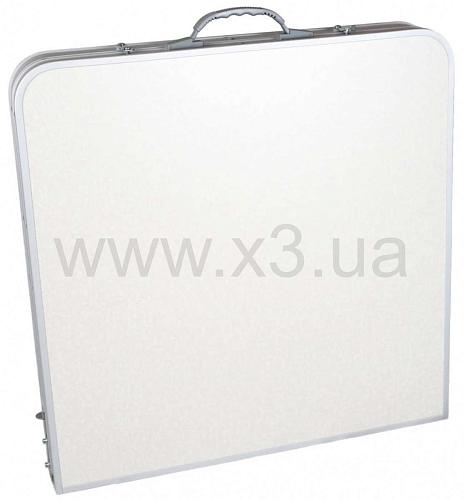 Стол простой в раскладывании и сборке. В собранном виде он представляет собой чемодан с ручкой, а также комплектуется чехлом, для большей защиты и удобной транспортировке.