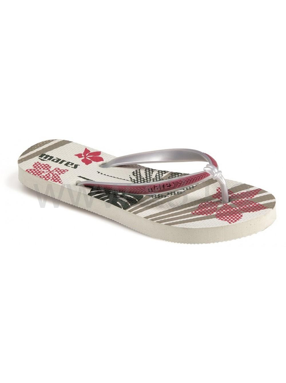 Вьетнамки MARES SLIPPER LEAF - красивые женские тапочки для пляжа или бассейна. Они изготовлены из EVA, легкого и долговечного, устойчивого к воде материала. Подошва вьетнамок достаточно толстая и надежно защищает ноги от повреждений. В них можно зайти в воду и не бояться порезать ноги ракушками. Они так же замечательно подходят для посещения бассейна или сауны, потому что их подошва не скользит по мокрому полу. Выглядит эта модель очень привлекательно, благодаря оригинальным рисунками и стильным перламутровым ремешкам с рельефной отделкой. Такая практичная и красивая обувь обязательно вам пригодится в жаркие летние дни, она незаменима для отдыха у водоема.