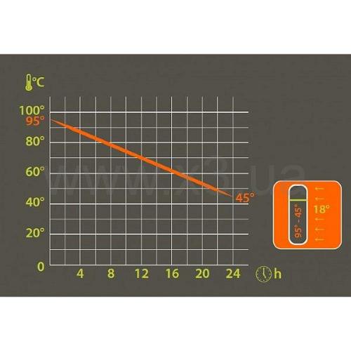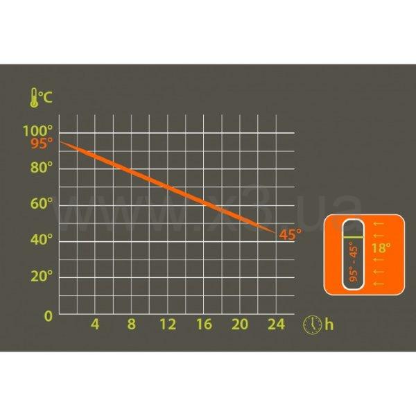 Через 24 часа, залитый горячий напиток с начальной температурой 95 °С достигает температуры около 65 °С при внешних температурных условиях 18 °С.