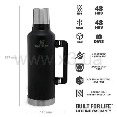 Термос вобрал в себя все наилучшие разработки бренда Stanley. Корпус из качественной пищевой стали с двойной вакуумной изоляцией стен позволяет сохранять температуру любимых напитков в течение 48 часов. А со льдом этот и без того рекордный показатель растет до 240 часов.