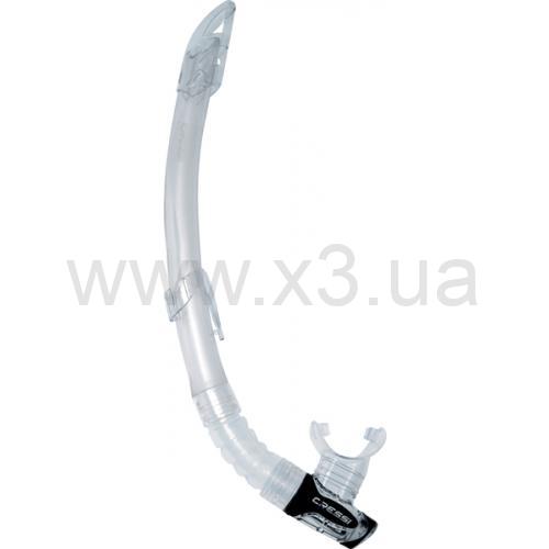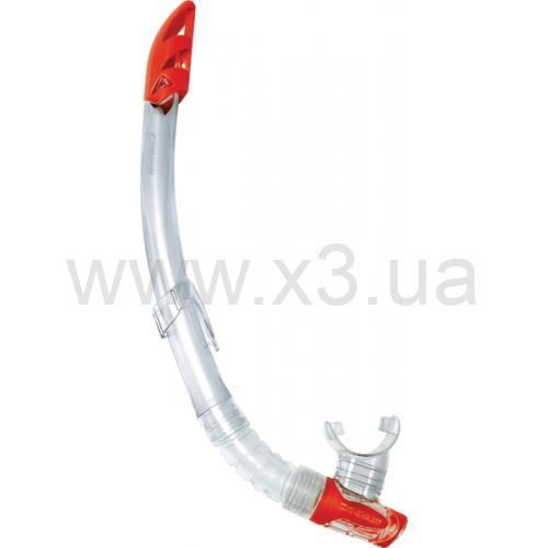 Ключевой особенностью данной модели является угловой загубник, предотвращающий попадание воды, а также широкие внутренние лепестковые клапаны, которые улучшают дренаж трубки. Форма окрашенной верхней части трубки позволяет предотвратить попадание брызг внутрь и увеличить видимость пловца.