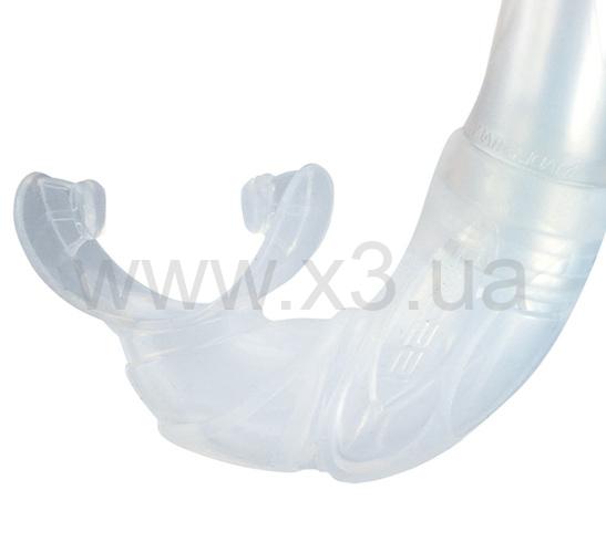 Загубник имеет анатомическую конструкцию и гибкую соединительную вставку с тремя изгибами, обеспечивающую удобное расположение загубника при любой форме лица, а также комфортное естественное дыхание.